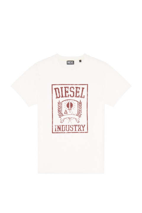 חולצת טריקו דקיקה עשויה מג’רזי כותנה קומפקטית. הטי לגברים הזה מודפס עדר עם סמל גרפי של תעשיית דיזל בחזית.