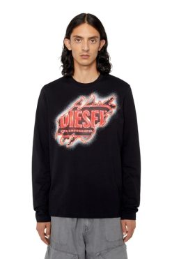 חולצת טריקו לגברים עם שרוולים ארוכים עשויה מכותנה ג’רזי. חתוך בצללית דקה, הוא כולל גרפיקה נועזת של ‘דיזל לחיים מוצלחים’ בחזית.