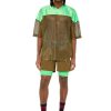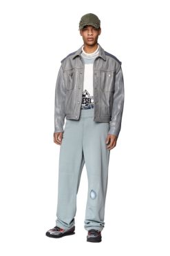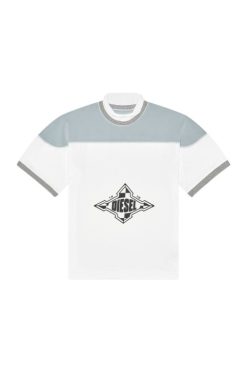 חולצת טריקו מכותנה עם עול קולור בלוק וחפתים סרוגים עם פסים. מעוצב עם צווארון סריג מגולגל, הוא כולל תפרים עליונים ניגודיים והדפס דיזל סדוק על החזה.