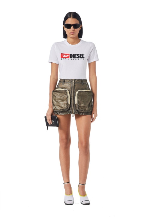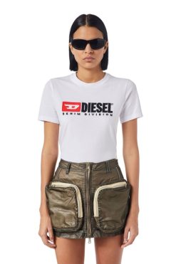 חולצת טריקו עשויה ג’רסי כותנה קלה. החזה מפורט עם לוגו ‘Disel Denim Division’, המשלב רקמה מלאה עם טלאי פליס הפוך.