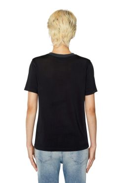 חולצת טי לנשים עם צווארון עגול בגזרה רגילה. הבגד צבוע לרכות ולתחושת וינטג’, רקום בסיסמה ‘על ידי דיזל, לשביעות רצונך הגדולה’. הג’רזי הנוזל עשוי בטכניקת ציפוי, עם ויסקוזה מבחוץ וכותנה רכה בפנים.