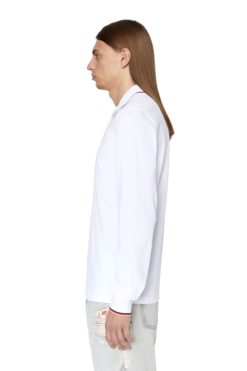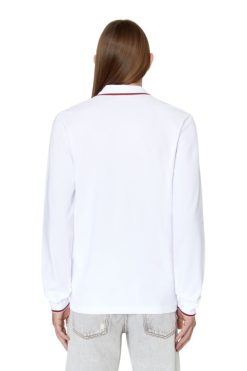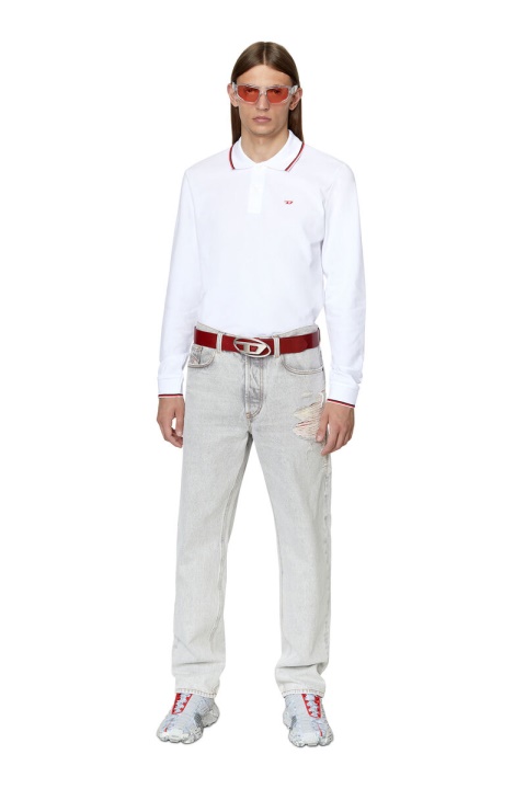 חולצת פולו גברים עם שרוולים ארוכים, חתוכה לגזרה דקיקה מפיקו כותנה משמעותית. שוליים עם פסים בצווארון ובחפתים, הוא מותג עם טלאי D רקום קטן על החזה השמאלי.