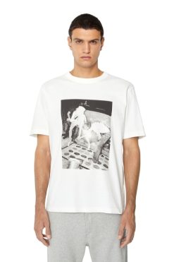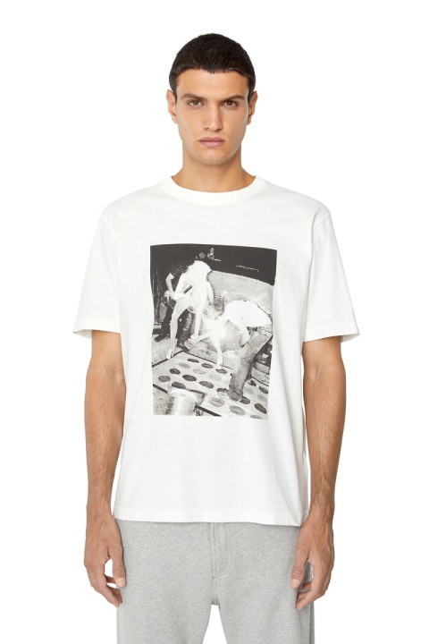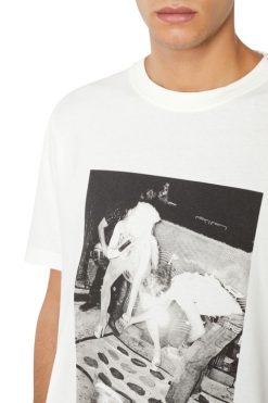 חולצת טריקו צבועה לגברים זו חתוכה בגזרה רופפת מכותנה ג’רזי. מפורט עם תמונה הדפסה דיגיטלית בחזית ורקמת D אובלית טונלית על השרוול.