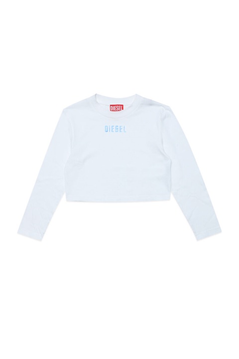 חולצה עם שרוולים ארוכים לילדות גזורה מג’רזי כותנה רכה. ממותג עם כיתוב דיזל מבריק על החזה.