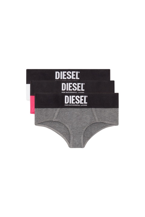 שלוש חבילות של מכנסי כותנה נמתחים לילדות בשלושה צבעים מגוונים עם דיטיילים בחזית Y. על כל אחד מהם רצועת רחבה של אקארד עם כיתוב מקסי Diesel For Successful Living.