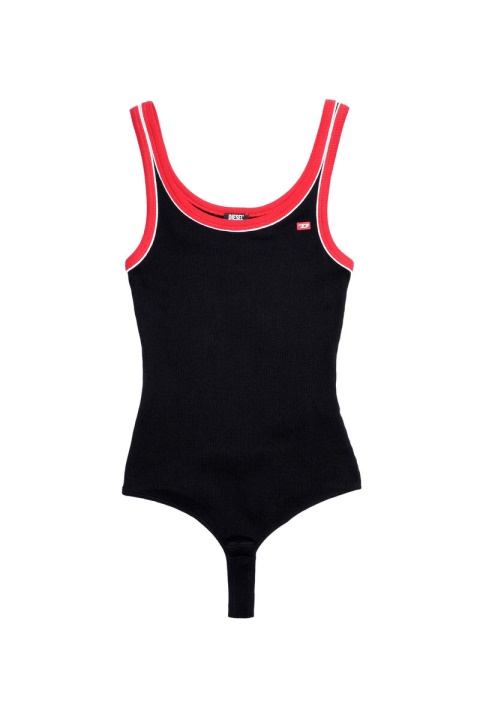 גוף בגזרת חוטיני עשוי מכותנה רכה וקלה עם צלעות מתיחה. עם שוליים עם צנרת ועיטורים ניגודיות, הוא ממותג עם תיקון לוגו ‘D’ על החזה השמאלי.