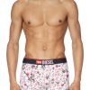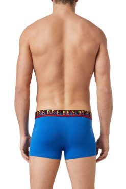 שלוש חבילות של תחתוני בוקסר מכותנה נמתחת רכה בשלושה צבעים מנוגדים. כל זוג מכוסה ברצועת מותן עם לוגו צבעוני שובב.