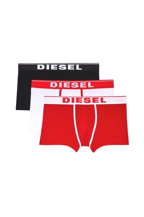 שלוש חבילות של ארגזים. כל זוג עשוי מכותנה נמתחת רכה עם רצועת מותן אלסטית מנוגדת עם כיתוב דיזל צבעוני.
