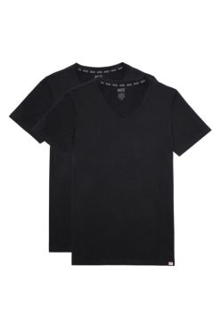 חבילה של שתי חולצות כותנה המיועדות לגזרה דקיקה עם צדדים ללא תפרים. ממותג עם תיקון לוגו ‘D’ קטן של אקארד בשולי.
